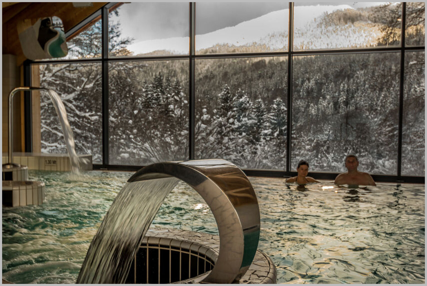 Relax after a day on the slopes in the spa, sauna, steam room, solarium and pools at Aquacime.