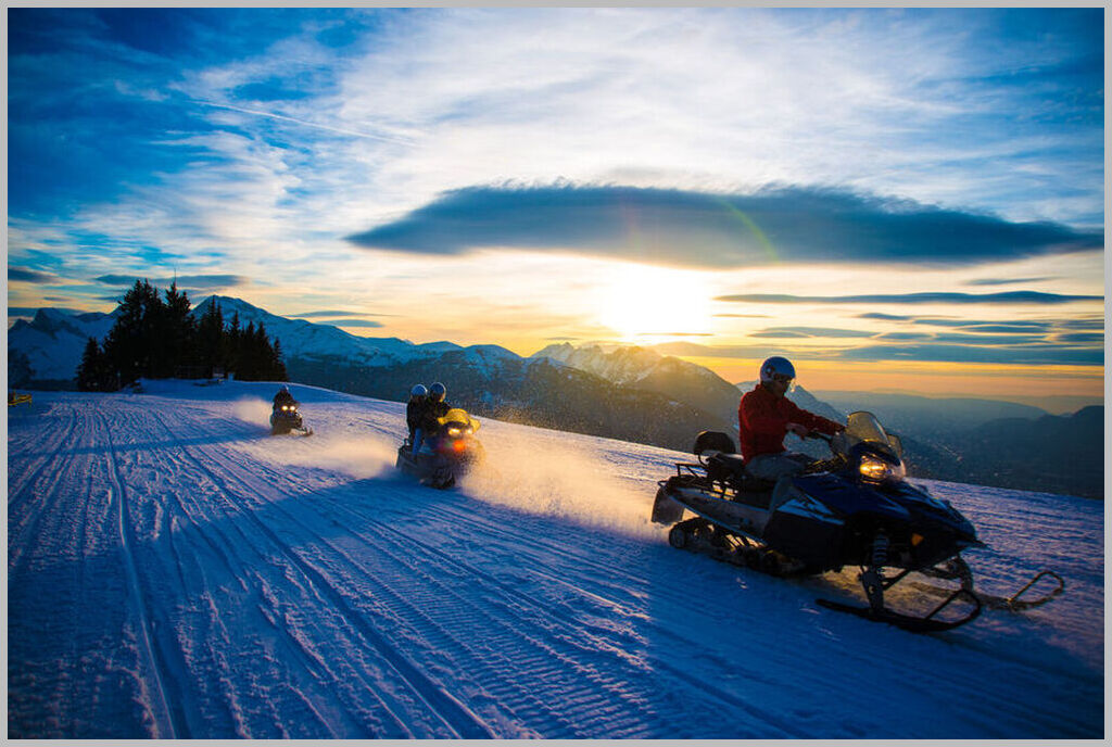 Starting just above Molliets, fantastic snowmobiling evening ride among ski trails through the forest.